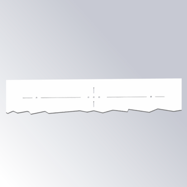 Lambrequin ajouré avec une ligne centrale discontinue et une découpe en frise irrégulière. Modèle sobre, teinté des codes plutôt classiques mais qui casse les codes par son asymétrie.